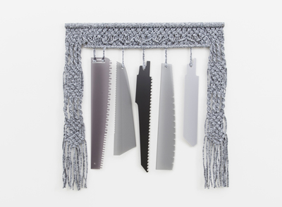 Rachel Adams 《Tools, Tools 1》 2015 macrame T-shirt yarn, laser cut acrylic, wooden dowel 88×h.86cm